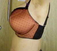 However, Curvy Kate’s decision also goes against what I think of as their whole philosophy of inclusive sizing, and especially the way in which they bring certain types of bras to sizes that have never had them before. I thought that’s what they were trying to do with the creation of a molded bra up to a J-cup. But for those wearing a 38 back, this bra only goes up to a G, which is hardly revolutionary; I know plenty of people who need sizes bigger than that. I’d also prefer if this bra went up to a K cup in a 28 band--that way even if they do cut off the sizes proportional to band size, at least they'd make it up to a GG or H in the 38 band. Curvy Kate’s Showgirl and padded bras have always come in fewer sizes than their unpadded bras, which seems like a real shame as it is often those with the biggest boobs who most desire the shape and support of padded bras, and who have the fewest options elsewhere. I know what I should say—that “it’s a start”—but I wish they would have started this with a bigger bang. I’m sure Curvy Kate wants to make sure to get the shape and support exactly right before they put bigger sizes into production; maybe I'm wrong about this, but I’m convinced that most people who are sized out of the Smoothie would have been happier with a slightly imperfect version rather than none at all.