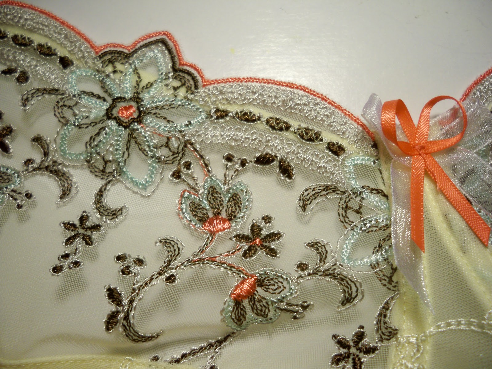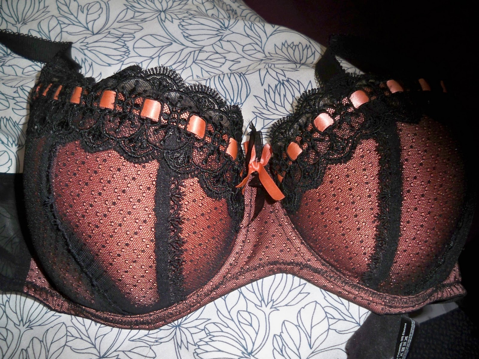 After my luck with the “Angel”, I decided to buy it in a second color, and since Brastop was doing free shipping, I got some other things to try as well. I noticed the “Ella” was back in stock in Ivory/Coral in a 28J and decided to try it. I needed a new Ivory colored bra because my Panache “Confetti” wasn’t too happy with me after I wore it literally every day for the whole summer. I had bought a ton of matching underwear so I wanted another bra in the same color.
